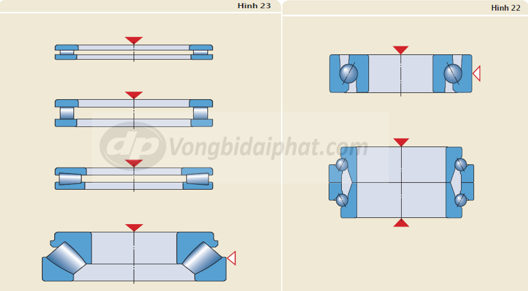 Đối với tải dọc trục tác động cả hai hướng thì ổ bi chặn hai hướng cần được sử dụng.