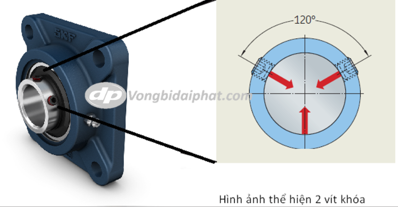 Một số gối đỡ vòng bi của dòng UC 200 được thiết kế với 2 vít khóa cách nhau góc 120° giúp cho hệ thống hoạt động đáng tin cậy, tăng sự cân bằng của trục trong những hệ hống hoạt động với rung động và tốc độ cao.