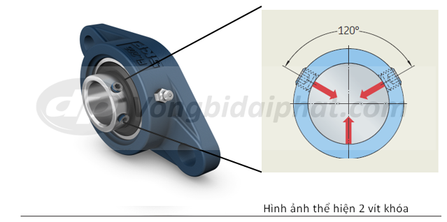 Một số gối đỡ vòng bi của dòng UC 200 được thiết kế với 2 vít khóa cách nhau góc 120° giúp cho hệ thống hoạt động đáng tin cậy, tăng sự cân bằng của trục trong những hệ hống hoạt động với rung động và tốc độ cao.