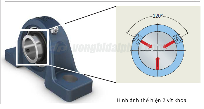 Một số gối đỡ vòng bi của dòng UC 200 được thiết kế với 2 vít khóa cách nhau góc 120° giúp cho hệ thống hoạt động đáng tin cậy, tăng sự cân bằng của trục trong những hệ hống hoạt động với rung động và tốc độ cao.