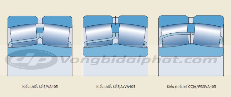 • Vòng bi tang trống kiểu EJA/VA405 và CCJA/W33VA405 có vòng cách thép dập kiểu ô kín được tôi hai mặt, vòng trong không có vai và một vòng dẫn hướng định tâm theo rãnh lăn vòng ngoài.