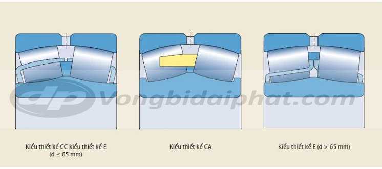 Tùy theo dãy kích thước và cỡ, vòng bi tang trống tiêu chuẩn SKF được chế tạo với các kiểu thiết kế cơ bản sau :