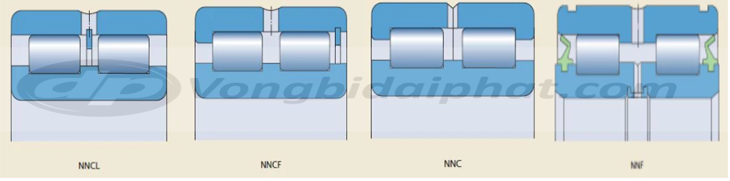 Kiểu thiết kế NNCL: Vòng bi đũa kiểu NNCL có ba gờ chặn trên vòng trong và không có gờ chặn trên vòng ngoài.