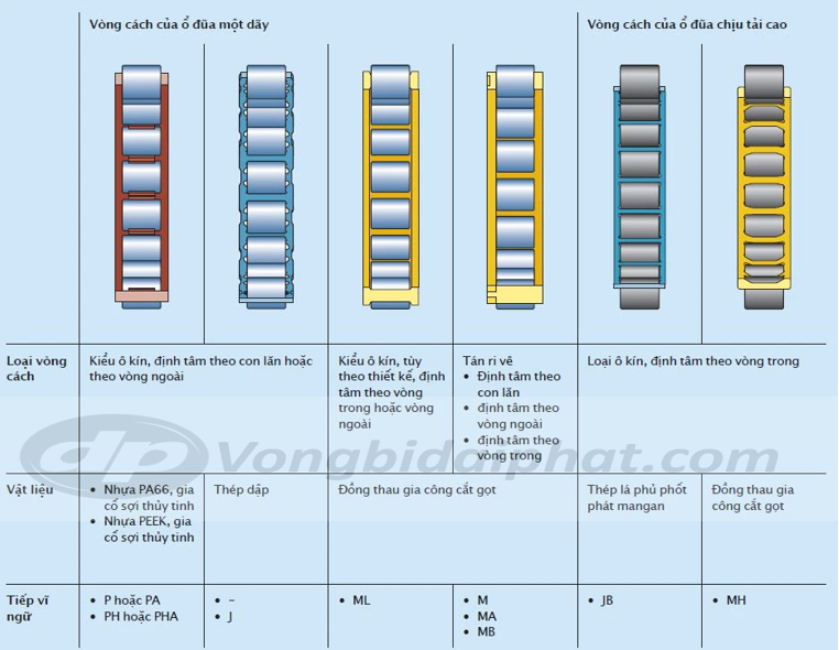 Vòng bi đũa được thiết kế với nhiều loại vòng cách khác nhau tùy theo kích cỡ để phù hợp vơi từng môi trường làm việc.