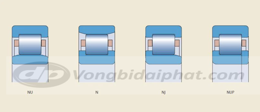 • Thiết kế kiểu NUP: Vòng bi đũa kiểu NUP có hai gờ chặn tích hợp trên vòng ngoài, một gờ chặn tích hợp trên vòng trong và một gờ chặn rời, tức là một vòng chặn rời, trên vòng trong. Các vòng bi đũa này thường được dùng
